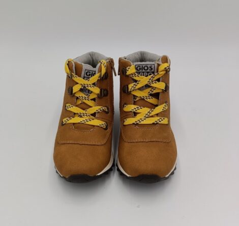 Este modelo é um dos nossos favoritos. Botins com atacadores e fecho interior para facilitar ao calçar, também tem detalhes de atacadores de montanhismo. Super original! Forro de acolchoado transpirável. Palmilha com o inovador sistema Gio Memory Effect para garantir um conforto extra. Sola superflex de borracha muito flexível. Todo o estilo está na Gioseppo Kids.