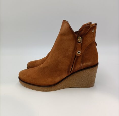 Botim de cunha para as mulheres Desireé Marvi1 em castanho. Características: Salto de 7 cm, botim casual, sola de borracha termoplástica, couro externo e forro têxtil interno e palmilha de couro acolchoado.