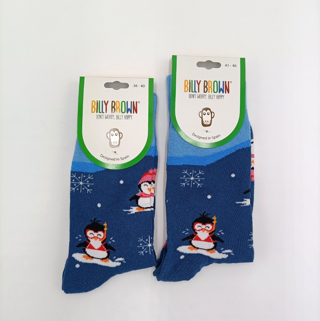 -Meias azul e azul marinho com estampado de penguin. -Meio cano.