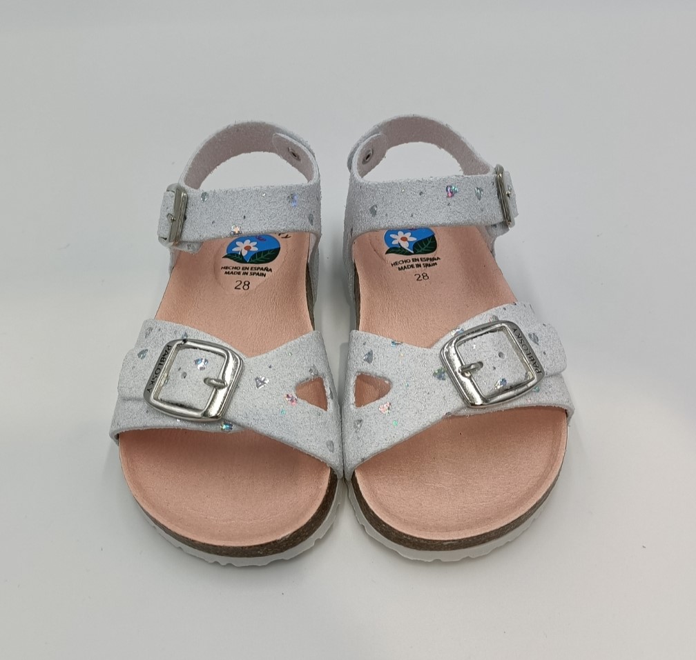 Fecho de fivela tradicional para ajuste perfeito em cada pé (todos os nossos elementos metálicos são ecológicos).