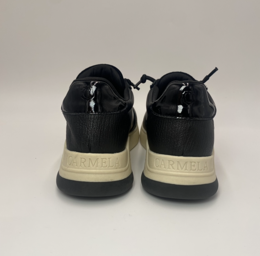 Sapatilha feminina, da marca Carmela. Feito de couro de alta qualidade. Com cadarços de elástico. Sola de borracha antiderrapante. Um modelo confortável ideal para os seus looks mais casuais.