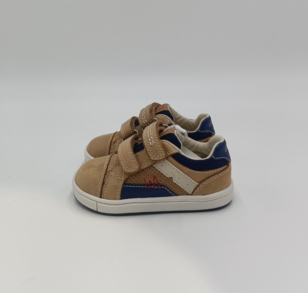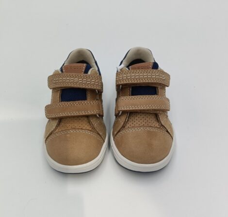 O tênis decotado respirável de menino em uma sola de caixa. Repleto de charme casual e apelo atemporal, Trottola é um pedaço de calçado cotidiano com uma estética informal fácil de combinar. Em couro encerado e malha marrom-manteiga, apresenta detalhes azul-marinho e repousa sobre uma sola de caixa branca contrastante.