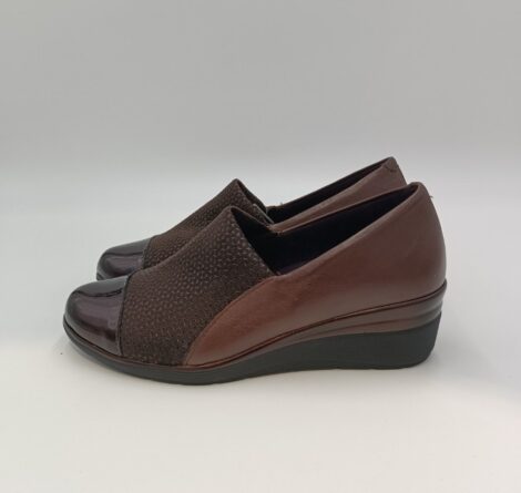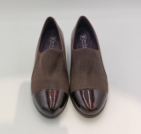 Sapato abotoado em nappa e couro patenteado, com pá de lycra alta que proporciona um ajuste simples e prático, que se encaixa em qualquer pé. Sua cunha baixa lhe dá uma vantagem de personalidade.